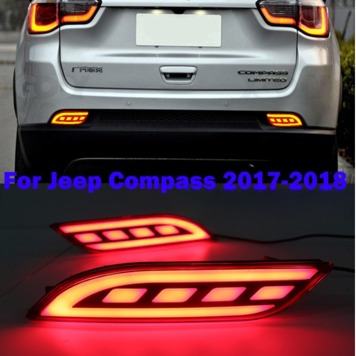 Upgrade your Jeep Compass with this LED Rear Bumper Reflector Light featuring Brake & DRL functions, designed to enhance rear visibility, safety, and sporty styling. This reflector light fits perfectly in the stock rear bumper location, maintaining a clean OEM-style factory finish.